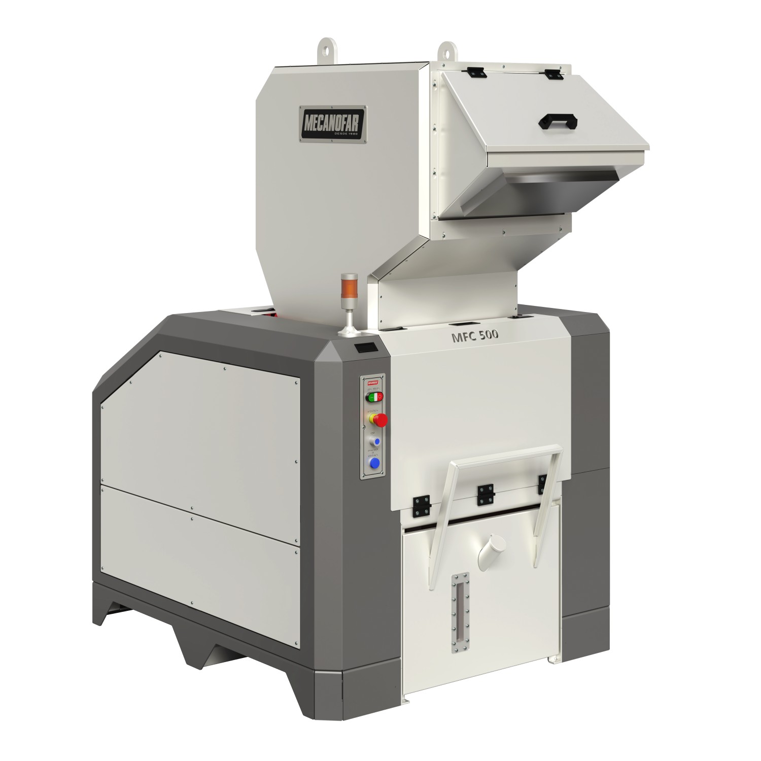 Os moinhos da linha RC (baixa rotação carenado) oferecem alta eficiência e rendimento, proporcionando baixa emissão de ruído. São ideais para recuperação imediata do rejeito junto a máquina transformadora (Sistema pé de máquina). Utilizados para moagem de pequenas e médias peças (rebarbas e galhos de injeção, sopro e extrusão) e podem ser usados em processos manuais ou automatizados.